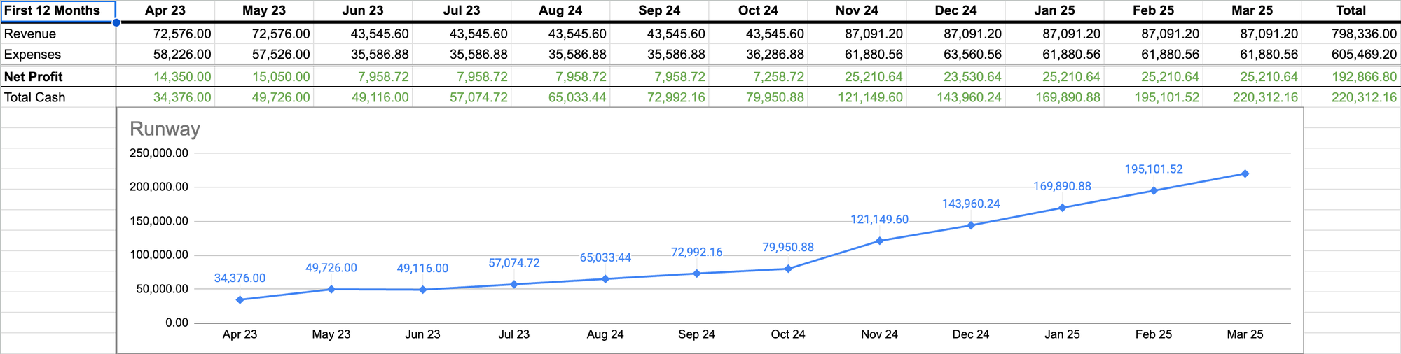 This line graph is your runway. Your company’s health bar. If this line dips below zero, you lose the game.